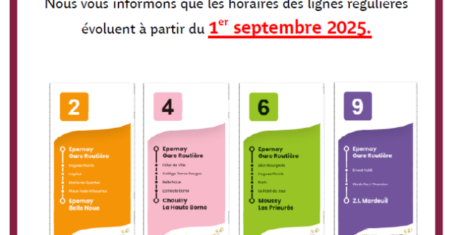 Nous vous informons que les horaires des lignes régulières 2, 4, 6, et 9 évoluent à partir du 1 er septembre 2025.
