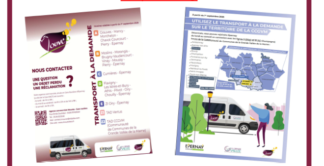 La Communauté de Communes de la Grande Vallée de la Marne crée un service de transport à la Demande sur son territoire en rabattement sur les lignes régulières 3 (Dizy) et 10 (AY-Centre) ainsi que sur la gare d'AY-Champagne à partir du 1er septembre 2025.