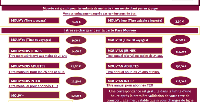 Modifications des tarifs Mouvéo au 1er septembre 2025