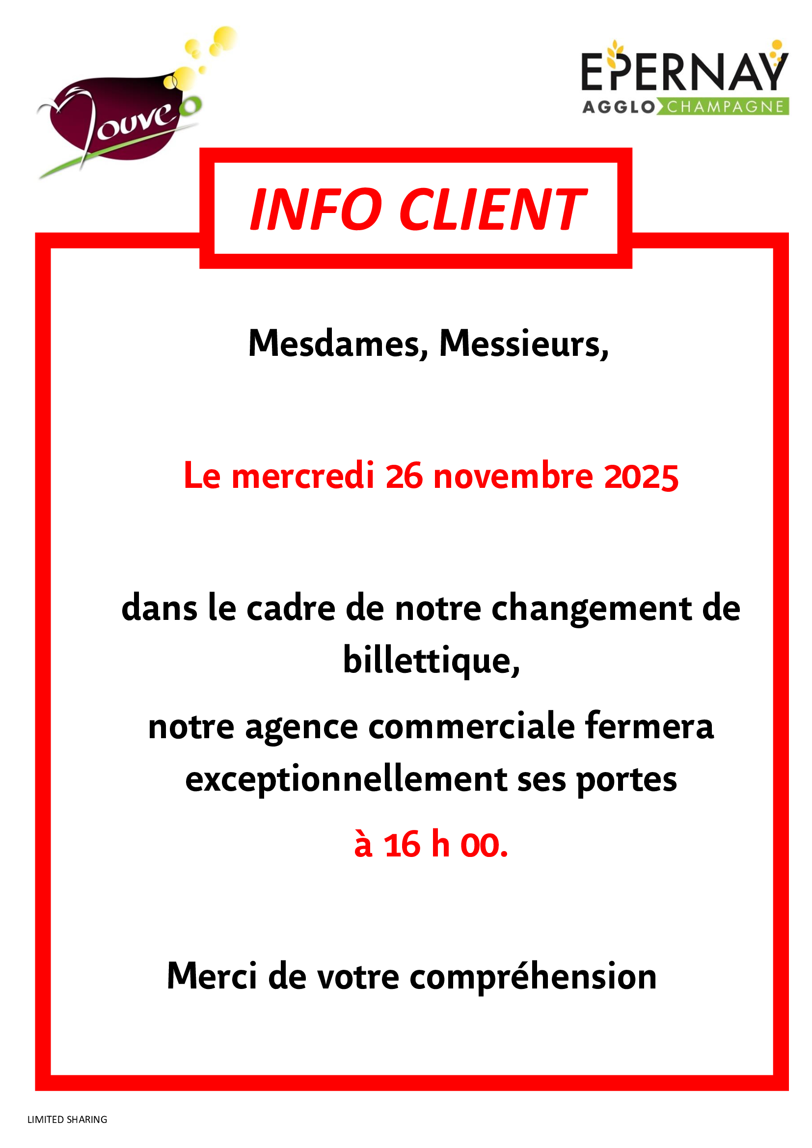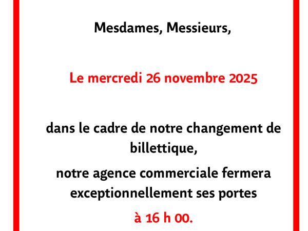Fermeture exceptionnelle de l'Agence commerciale Mouvéo