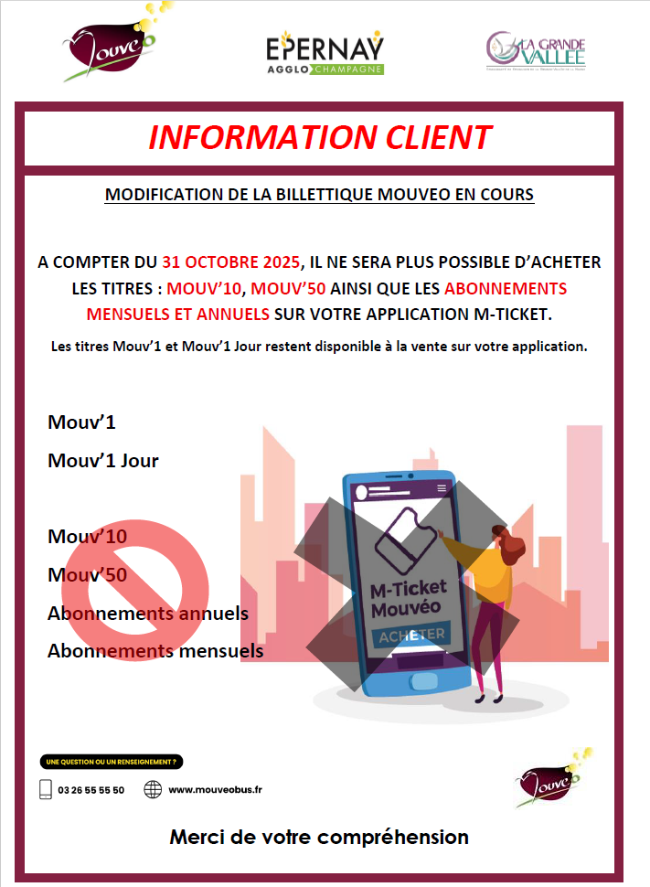 Modification de la billettique Mouvéo au 31 Octobre 2025